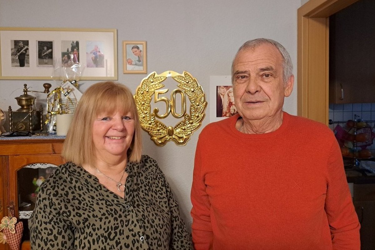 Anlässlich der Goldenen Hochzeit der Eheleute Udo und Christel Buchenau überbrachte Bürgermeister Christian Jung die Grüße und Glückwünsche der Stadt Friedrichsthal.