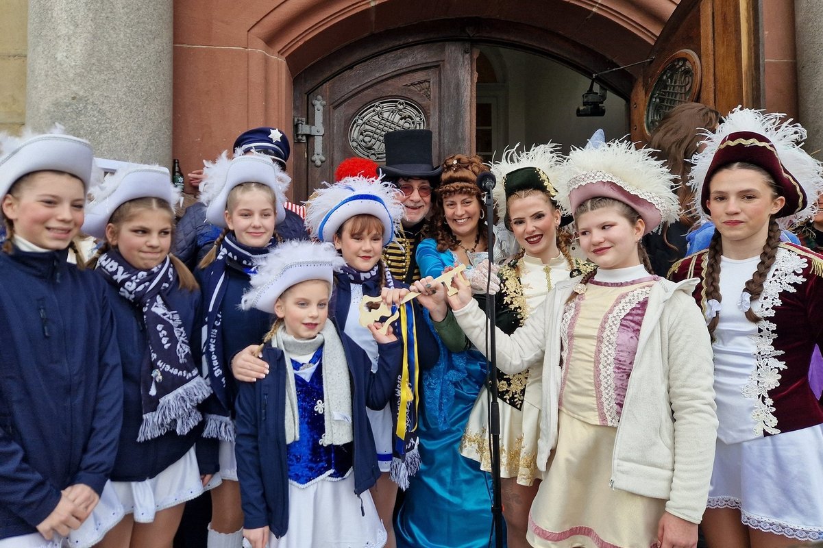 Um 16 Uhr marschierten die drei Karnevalsvereine aus Friedrichsthal vor das Rathaus, um das Regiment zu übernehmen. Mit jeder Menge guter Laune wurde das Rathaus kurzerhand zur närrischen Hochburg erklärt.