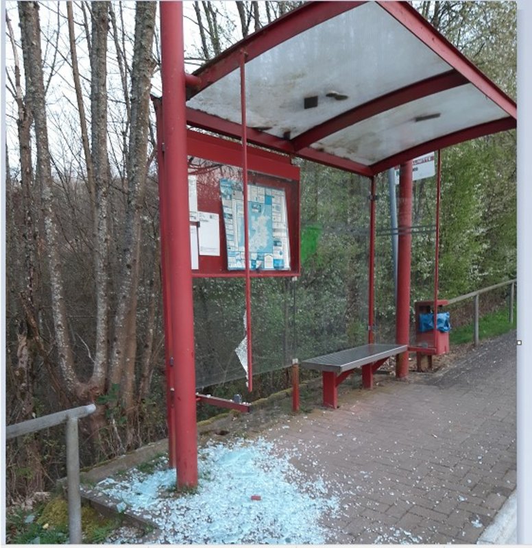 Unbekannte haben z.B. letzte Woche die Glasscheibe an einer Bushaltestelle mutwillig zerschlagen. Bushaltestellen sollen es den Fahrgästen ermöglichen, sich dort vor der Witterung geschützt aufzuhalten. Nach einer aufwändigen Sanierung einiger Haltestellen zu Beginn des Jahres, wurde nun wieder eine Haltestelle sinnlos zerstört.